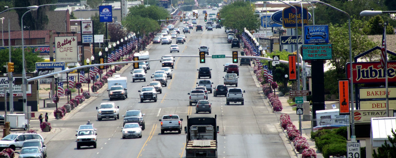 A green and tree shaded community in an otherwise dry plain, Vernal is an attractive small town with some 8,000 residents. It serves as a good base for visiting nearby Dinosaur National Monument, Flaming Gorge National Recreation Area and the Uinta Mountains. It offers a decent selection of motels and has numerous small restaurants, cafes and fast food joints.
